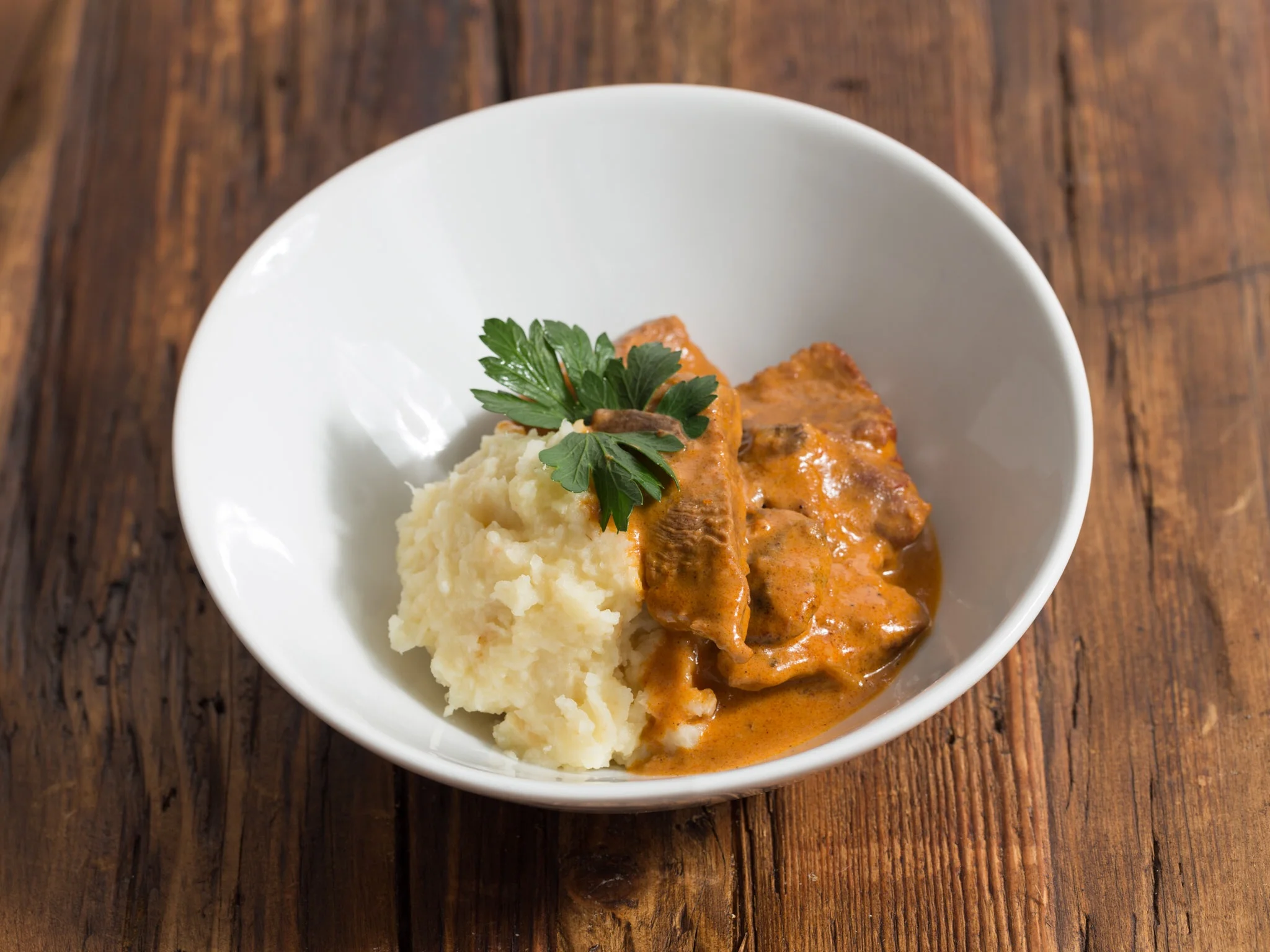 Beef Stroganoff with Celery Root Mash