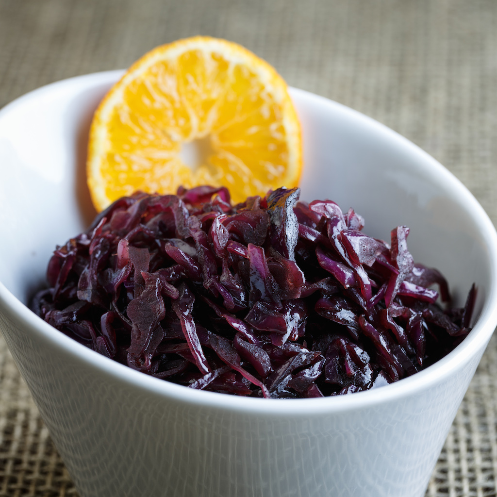 Season with salt, pepper, vinegar and sugar. Serve heated to pork roasts or roasted duck.